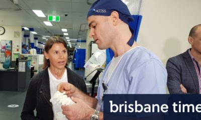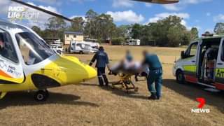 A man in his 60s has been flown to hospital by LifeFlight after his leg was impaled by a rusty piece of metal in the South...
