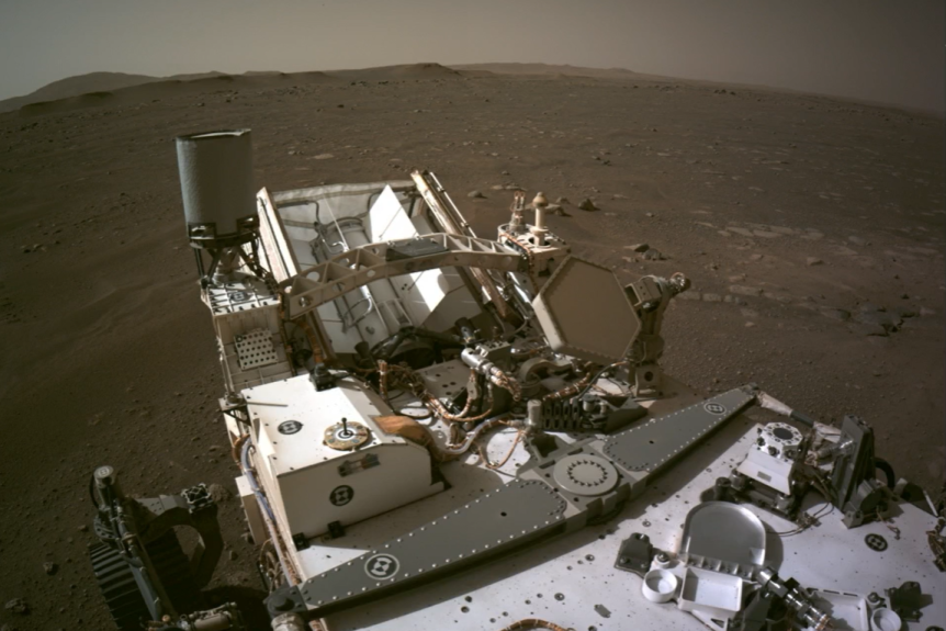 High-res image of Mars taken by Perseverance after it landed on the surface of the red planet. (Supplied: NASA)